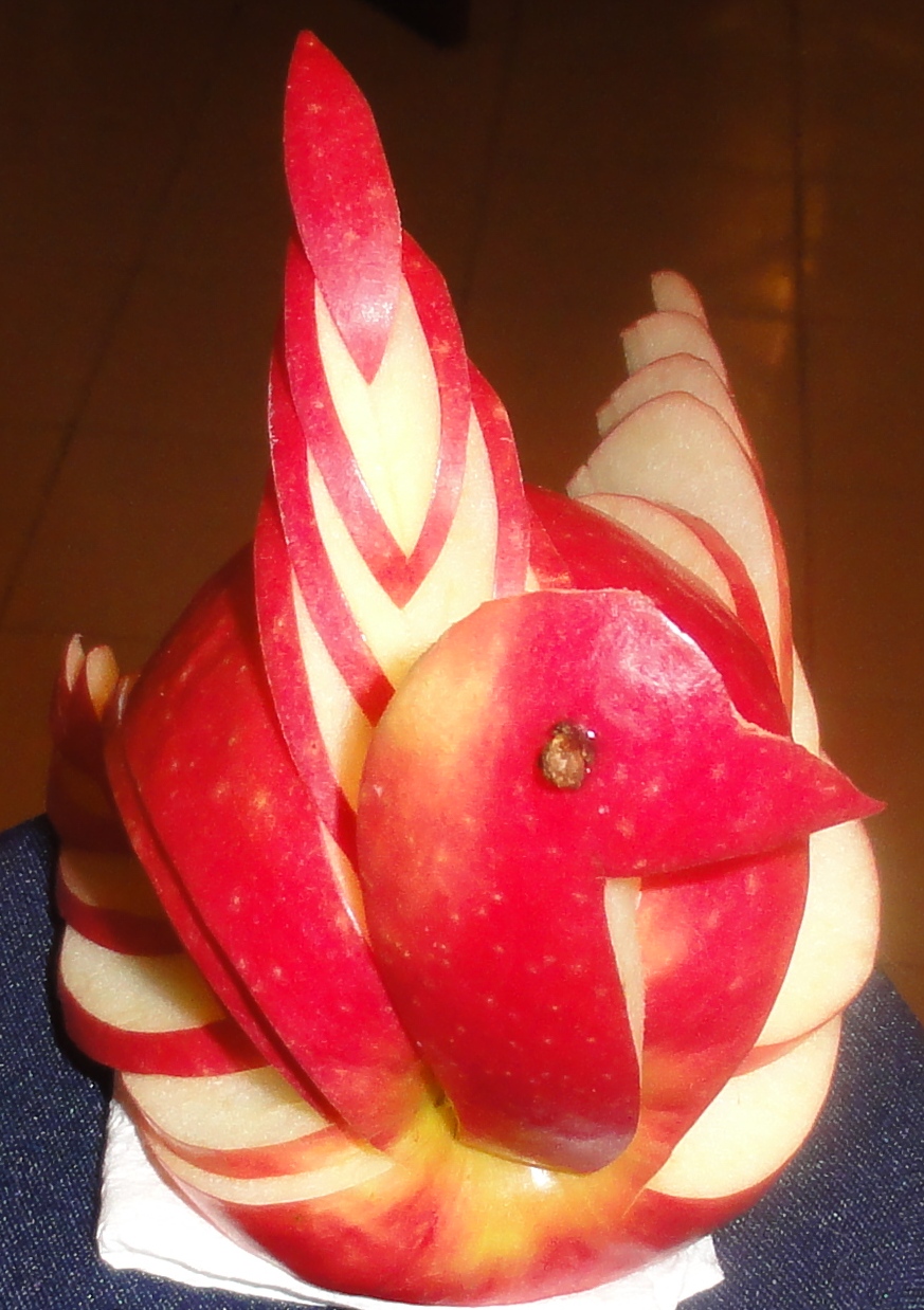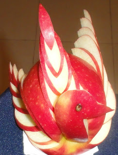 Aqui vai uma pequena brincadeira feita com maçã de fácil execução. Espero poder mostar um pouco mais daqui a algum tempo e porque não um pequeno video, isso de facto seria o ideal, a ver vamos...