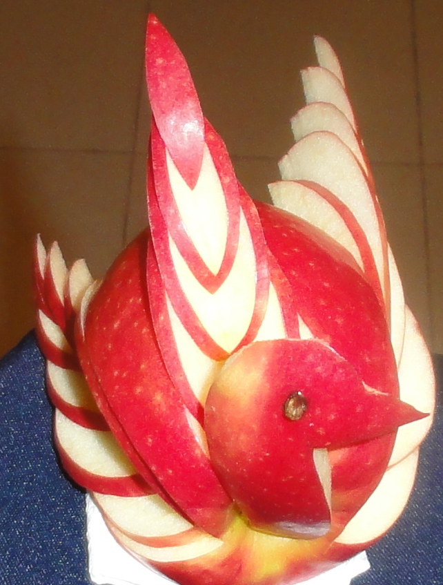 Este pequeno cisne também pode ser elaborado com maçã golden. No futuro mostrarei outras formas de embelezar as nossas vidas fazendo esculturas simples e algumas mais complexas com fruta e vegetais variados.