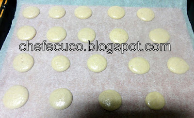 deixar ganhar uma crosta na superfície dos "macarons". Meter ao forno